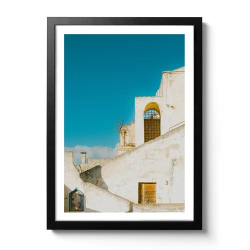 Skylineansicht von Matera (Italien). Blauer Himmer und leichte Sonnenuntergangs-Stimmung